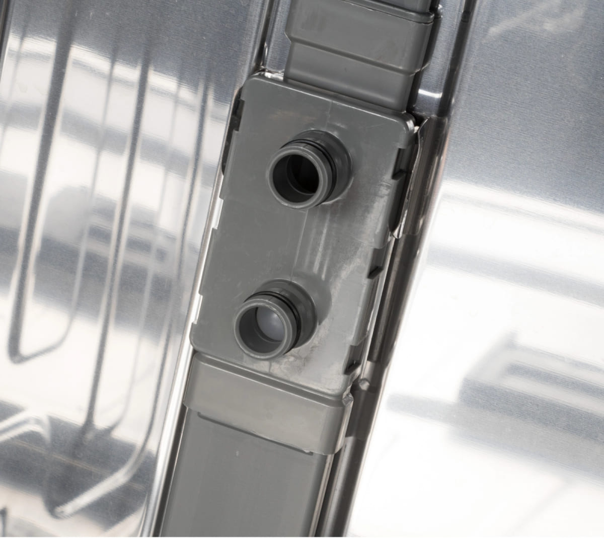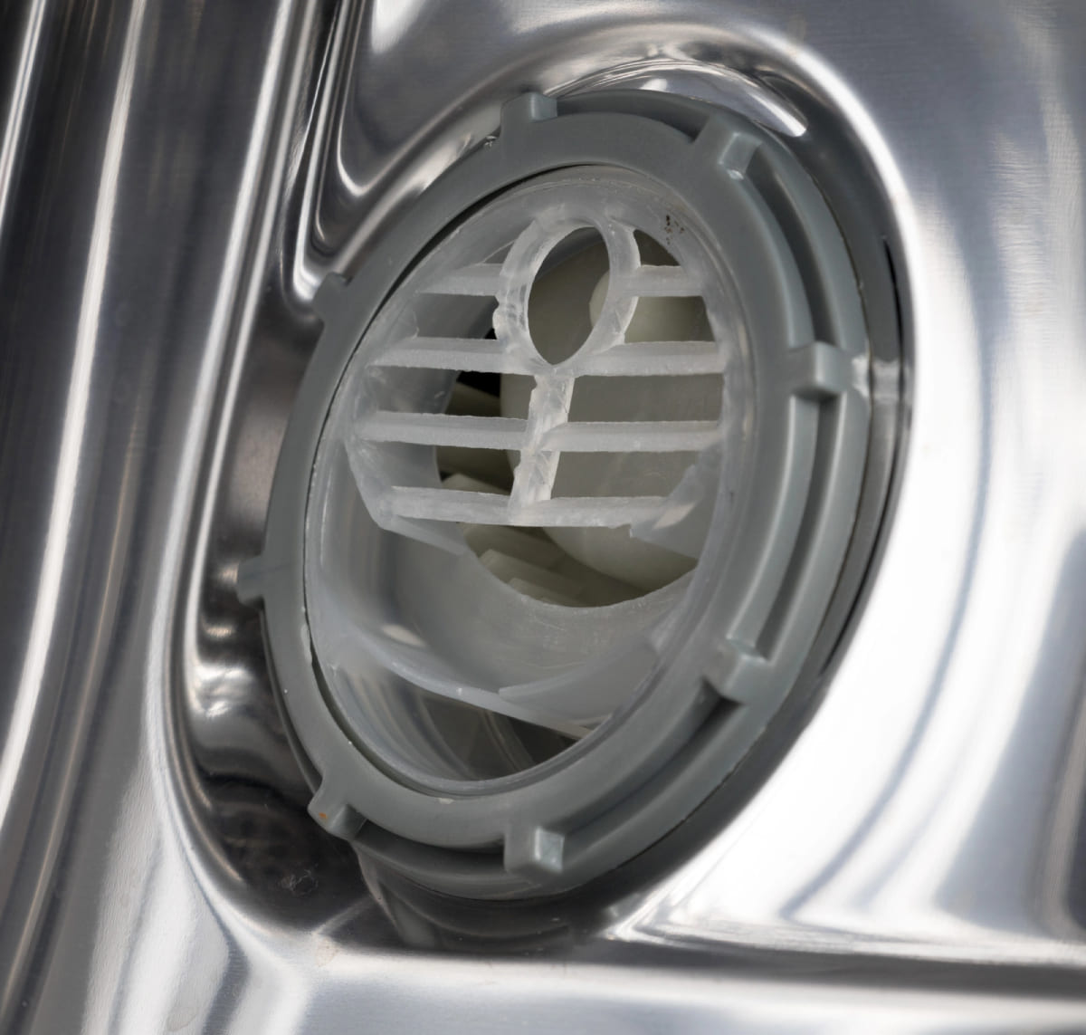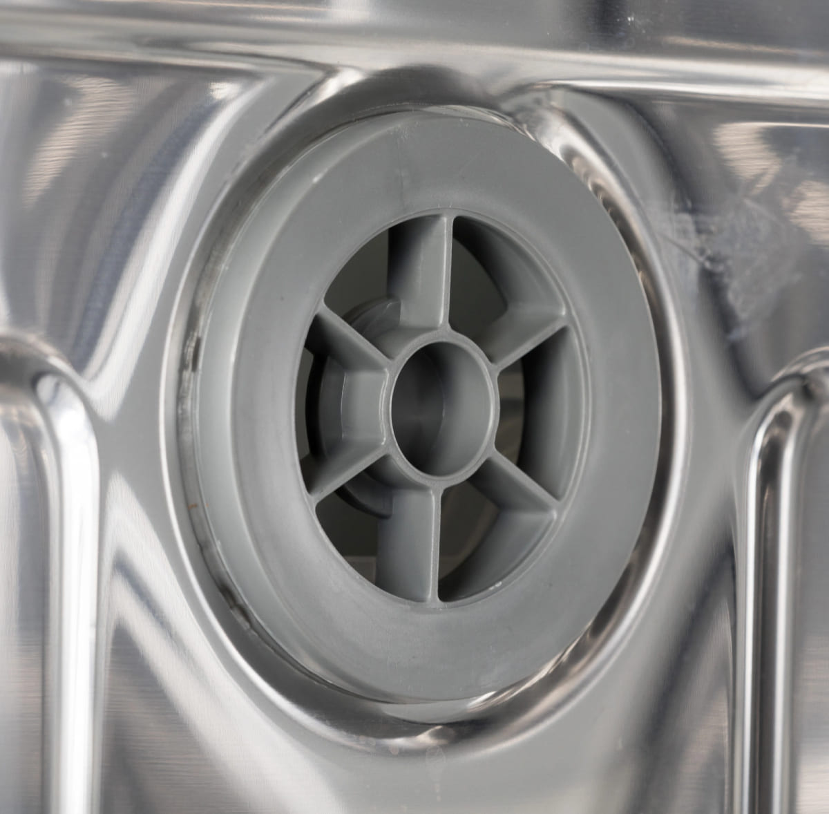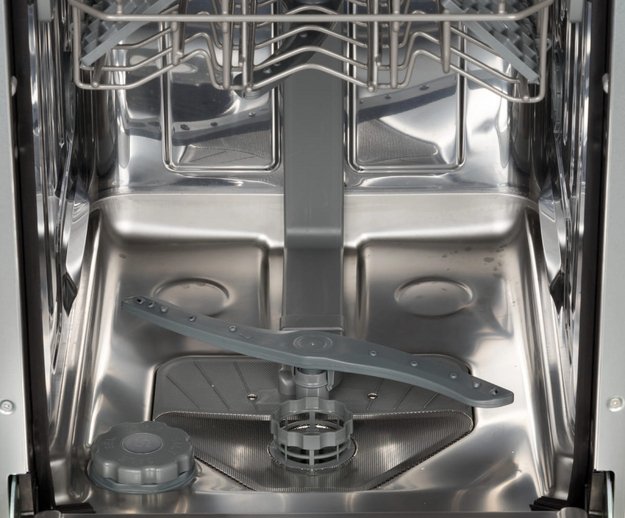 Как известно, принцип работы посудомоечной машины состоит в том, что на посуду в корзинах воздействуют сильные струи воды, которые подаются сквозь специальные форсунки во вращающихся разбрызгивателях-коромыслах. Класс мытья определяется, исходя из количества разбрызгивателей и форсунок, а также их диаметра — чем больше отверстий и чем меньше их диаметр, тем выше класс. Имеет значение также и расположение отверстий, так как струи воды не должны пересекаться — это мешает точности попадания в нужные места, а значит, и эффективности мытья. Кроме того, в камере не должно оставаться «слепых» зон, куда вода попадать не будет.