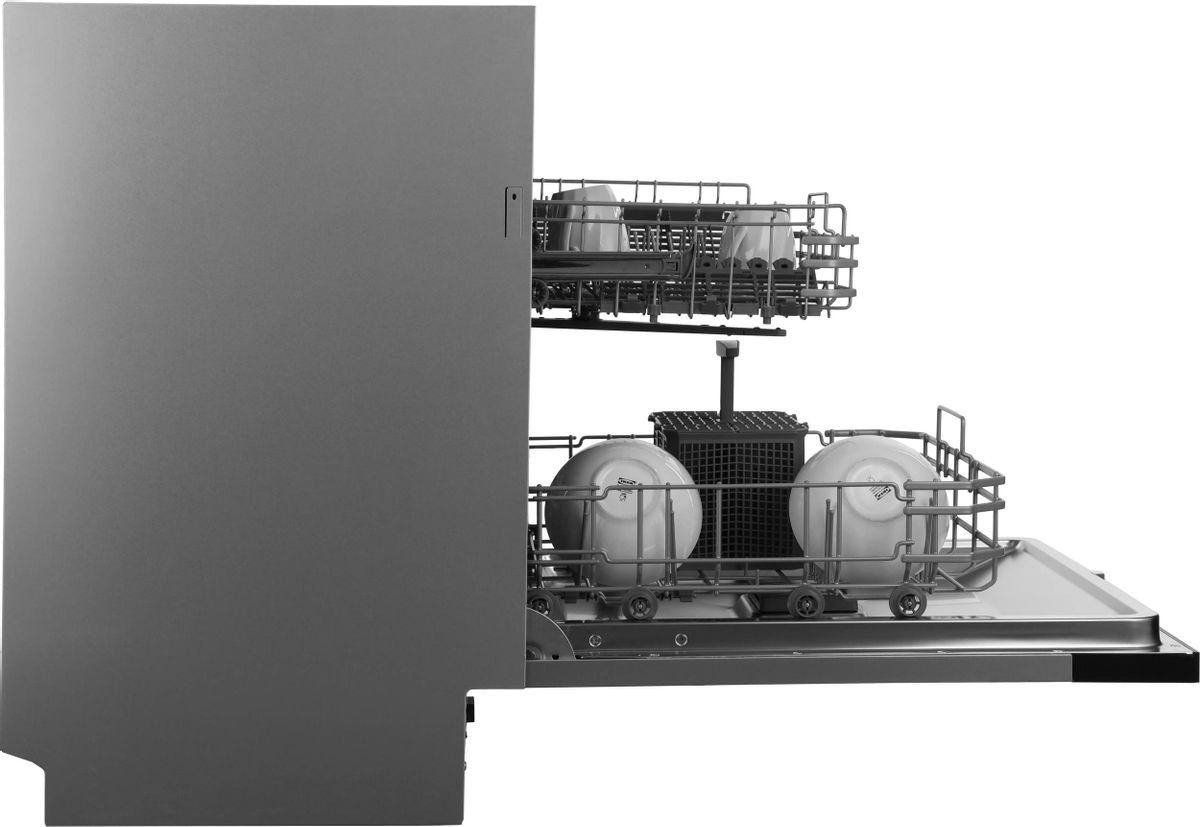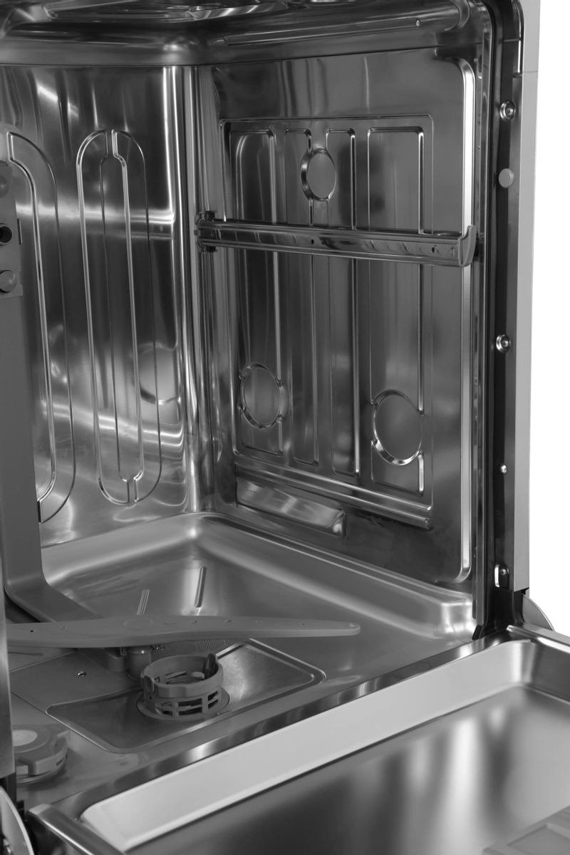 Встраиваемая модель Хендай отлично впишется в любой интерьер, главное — правильно выбрать место, чтобы подвести коммуникации. Устанавливается в нишу целиком, полностью закрывается декоративной панелью. Имеет стандартные размеры, поэтому может не поместиться на очень маленькой кухне. В камеру можно загрузить ограниченное число комплектов: 13 шт. Комплектом считается набор посуды на одного человека, который нужен для полноценного приема пищи: глубокая и плоская тарелки, тарелка для салата, блюдце под чашку, сама чашка, ложка и вилка.