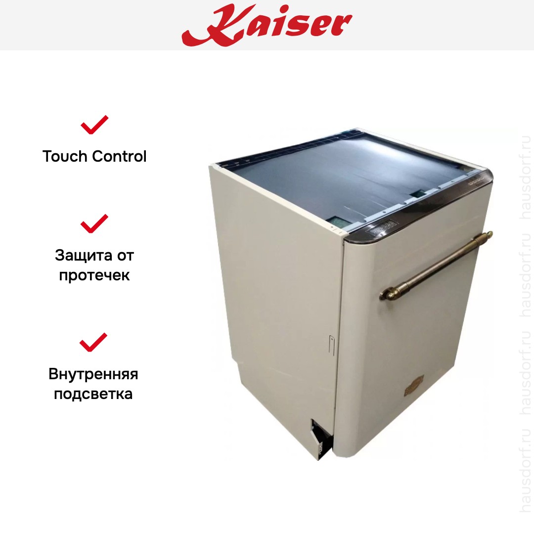 Посудомоечная машина Kaiser S60 U 87 XL ElfEm — встраиваемая модель в цвете слоновой кости. Элегантный ретро дизайн идеально сочетается с остальной бытовой техникой производителя. Изысканная фурнитура дополнят образ и обеспечивает удобное открытие и закрытие дверцы. Изделие предусматривает наличие шести стандартных программ для качественного мытья посуды разнообразных материалов. Например, для сильно загрязненной посуды предусмотрен интенсивный режим, а при ограниченном времени — программа на один час.
