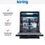 Korting KDI 60575 — полноразмерная посудомоечная машина с полной защитой от протечек и расходом воды 11 литров на один цикл мытья. Модель предназначена для встраивания в стандартную кухонную тумбу, снаружи она закрывается декоративным мебельным фасадом со слайдерным креплением. Вместимость посудомойки — до 14 комплектов посуды. Проточный водонагреватель позволяет сократить длительность мытья. Набор стандартных программ включает программу обычной мойки за 90 минут, интенсивную программу для удаления сильных загрязнений, быструю мойку без сушки, экономичную программу с малым потреблением электроэнергии, бережную мойку стеклянной посуды. Опция половинной загрузки может использоваться для мытья небольшого количества посуды с экономией ресурсов. Изменить выбранную программу можно после начала работы.