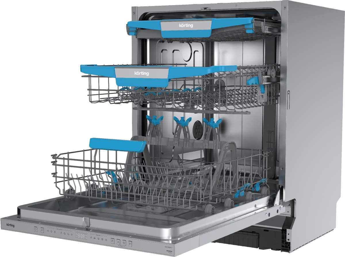 Встраиваемая модель Кертинг отлично впишется в любой интерьер, главное — правильно выбрать место, чтобы подвести коммуникации. Устанавливается в нишу целиком, полностью закрывается декоративной панелью. Обратите внимание: в комплекте не идет фасад, его необходимо установить самостоятельно. Имеет стандартные размеры, поэтому может не поместиться на очень маленькой кухне. В камеру можно загрузить ограниченное число комплектов: 14 шт. Комплектом считается набор посуды на одного человека, который нужен для полноценного приема пищи: глубокая и плоская тарелки, тарелка для салата, блюдце под чашку, сама чашка, ложка и вилка.