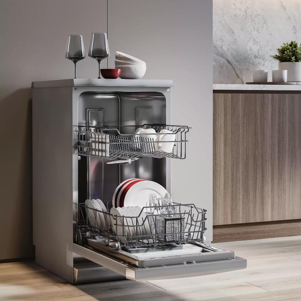 Ширина посудомоечной машины — важный параметр, определяющий ее вместимость и влияющий на выбор модели. Все посудомойки, как встраиваемые, так и отдельностоящие, принято делить на три категории: полноразмерные, узкие и компактные (в эту категорию входят и настольные модели).