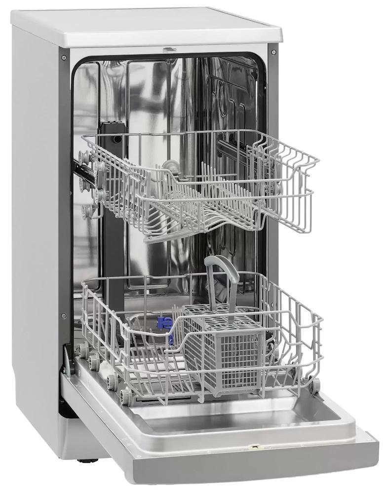 Отдельностоящая модель Крона отлично впишется в кухонный интерьер, главное — правильно выбрать место, чтобы подвести коммуникации. Имеет уменьшенную ширину — благодаря этому поместится даже на очень маленькой кухне. В камеру можно загрузить ограниченное число комплектов: 9 шт. Комплектом считается набор посуды на одного человека, который нужен для полноценного приема пищи: глубокая и плоская тарелки, тарелка для салата, блюдце под чашку, сама чашка, ложка и вилка.