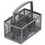 Корзина для столовых приборов достаточно высока, ввиду чего она устанавливается в нижнем коробе, где для нее предусматривается специальное место между разделителями для тарелок. Приборы в корзине могут размещаться как вниз, так и вверх рукоятками — это зависит от количества приборов и требований пользователя. Однако острые предметы — ножи или вилки — необходимо размещать острием вниз для предотвращения травм. Ножи рекомендуется размещать в корзинах с осторожностью, поскольку лезвия из керамики, например, могут затупиться. Чтобы избежать этого, следует использовать фирменные моющие средства и обязательно располагать ножи по отдельности, чтобы они не соприкасались с другими предметами.