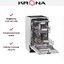 Посудомоечная машина Krona Lumera 45 BI — встраиваемая компактная модель для тех, кто ценит аккуратный интерьер и грамотное использование пространства. Она полностью прячется под фасадом, поэтому вид кухни остается единым и спокойным. Панель управления расположена за закрытой дверцей и выполнена из нержавеющей стали, что повышает срок службы и делает интерфейс устойчивым к повреждениям.