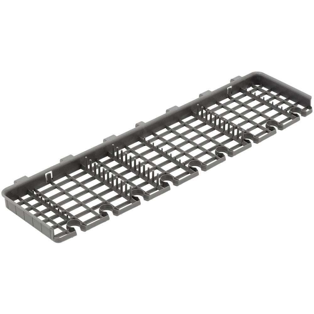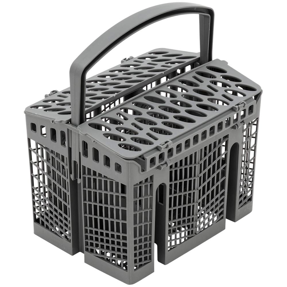 Корзина для столовых приборов — один из обязательных аксессуаров, которыми оснащается любая посудомоечная машина. Она представляет собой сетчатый пластиковый органайзер, в котором устанавливаются в вертикальном положении ложки, ножи и вилки. Корзина, как правило, разделяется на отдельные отсеки, в каждый из которых можно поместить один или несколько предметов. Зачастую сверху она закрывается специальной крышкой, которая также служит для разделения приборов, способствуя более тщательному их мытью.