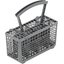 Корзина для столовых приборов — один из обязательных аксессуаров, которыми оснащается любая посудомоечная машина. Она представляет собой сетчатый пластиковый органайзер, в котором устанавливаются в вертикальном положении ложки, ножи и вилки. Корзина, как правило, разделяется на отдельные отсеки, в каждый из которых можно поместить один или несколько предметов. Зачастую сверху она закрывается специальной крышкой, которая также служит для разделения приборов, способствуя более тщательному их мытью.