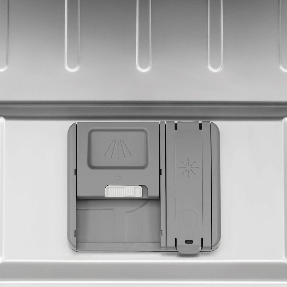Электронное управление с LED-дисплеем и сенсорной панелью делает эксплуатацию интуитивной и аккуратной. Таймер отсрочки запуска от 1 до 24 часов позволяет планировать работу на удобное время. Индикаторы наличия ополаскивателя и соли обеспечивают своевременное обслуживание, а индикатор «Луч на полу» показывает состояние цикла без необходимости заглядывать за фасад.