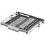 Опуская или поднимая корзину, вы можете положить в нее крупную или обычную посуду. Благодаря этому отмываются не только обеденные тарелки, но и сковороды, кастрюли.