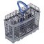 Корзина для столовых приборов — один из обязательных аксессуаров, которыми оснащается любая посудомоечная машина. Она представляет собой сетчатый пластиковый органайзер, в котором устанавливаются в вертикальном положении ложки, ножи и вилки. Корзина, как правило, разделяется на отдельные отсеки, в каждый из которых можно поместить один или несколько предметов. Зачастую сверху она закрывается специальной крышкой, которая также служит для разделения приборов, способствуя более тщательному их мытью.