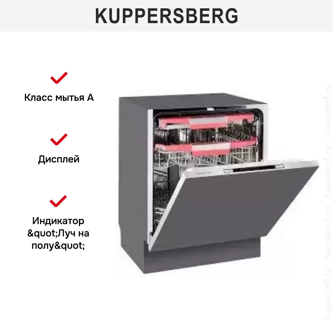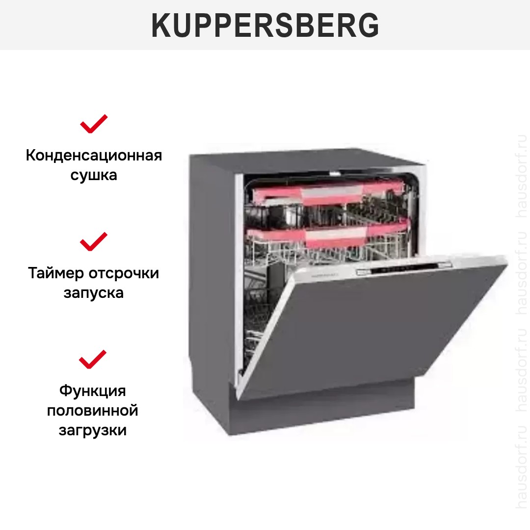 Встраиваемая модель Куперсберг отлично впишется в любой интерьер, главное — правильно выбрать место, чтобы подвести коммуникации. Устанавливается в нишу целиком, полностью закрывается декоративной панелью. Обратите внимание: в комплекте не идет фасад, его необходимо установить самостоятельно. Имеет стандартные размеры, поэтому может не поместиться на очень маленькой кухне. В камеру можно загрузить ограниченное число комплектов: 14 шт. Комплектом считается набор посуды на одного человека, который нужен для полноценного приема пищи: глубокая и плоская тарелки, тарелка для салата, блюдце под чашку, сама чашка, ложка и вилка.