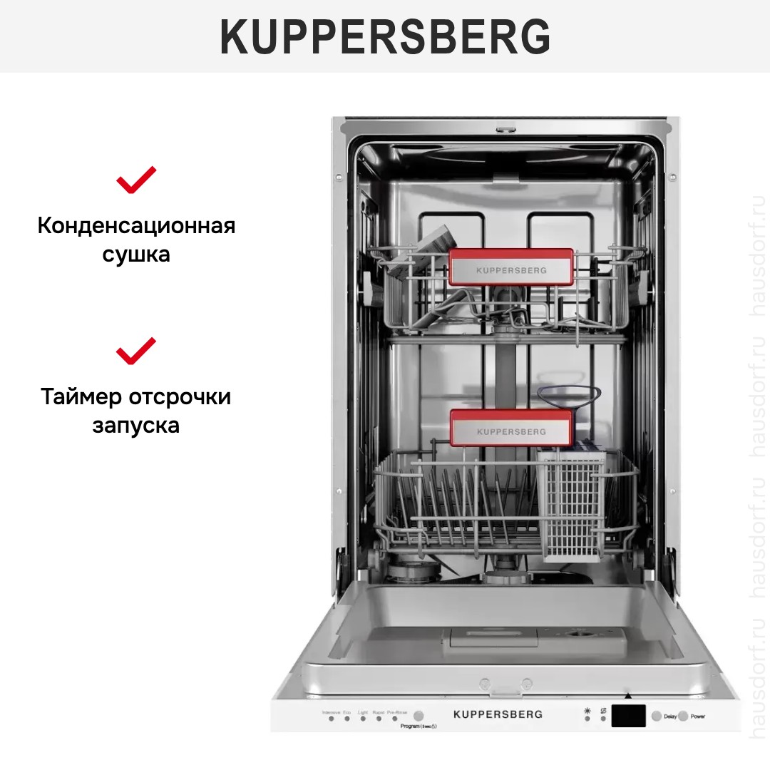 Встраиваемая посудомоечная машина Kuppersberg GGS 4525 — современное решение для тех, кто стремится к безупречной чистоте кухонной утвари при минимальных усилиях и разумном расходе ресурсов. Компактная модель высотой 45 см идеально подходит для небольших кухонь, квартир-студий или дачных домиков, где важна каждая единица пространства. Несмотря на уменьшенные габариты, техника вмещает до 10 комплектов посуды, что достаточно для повседневных нужд семьи из 2–3 человек.