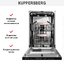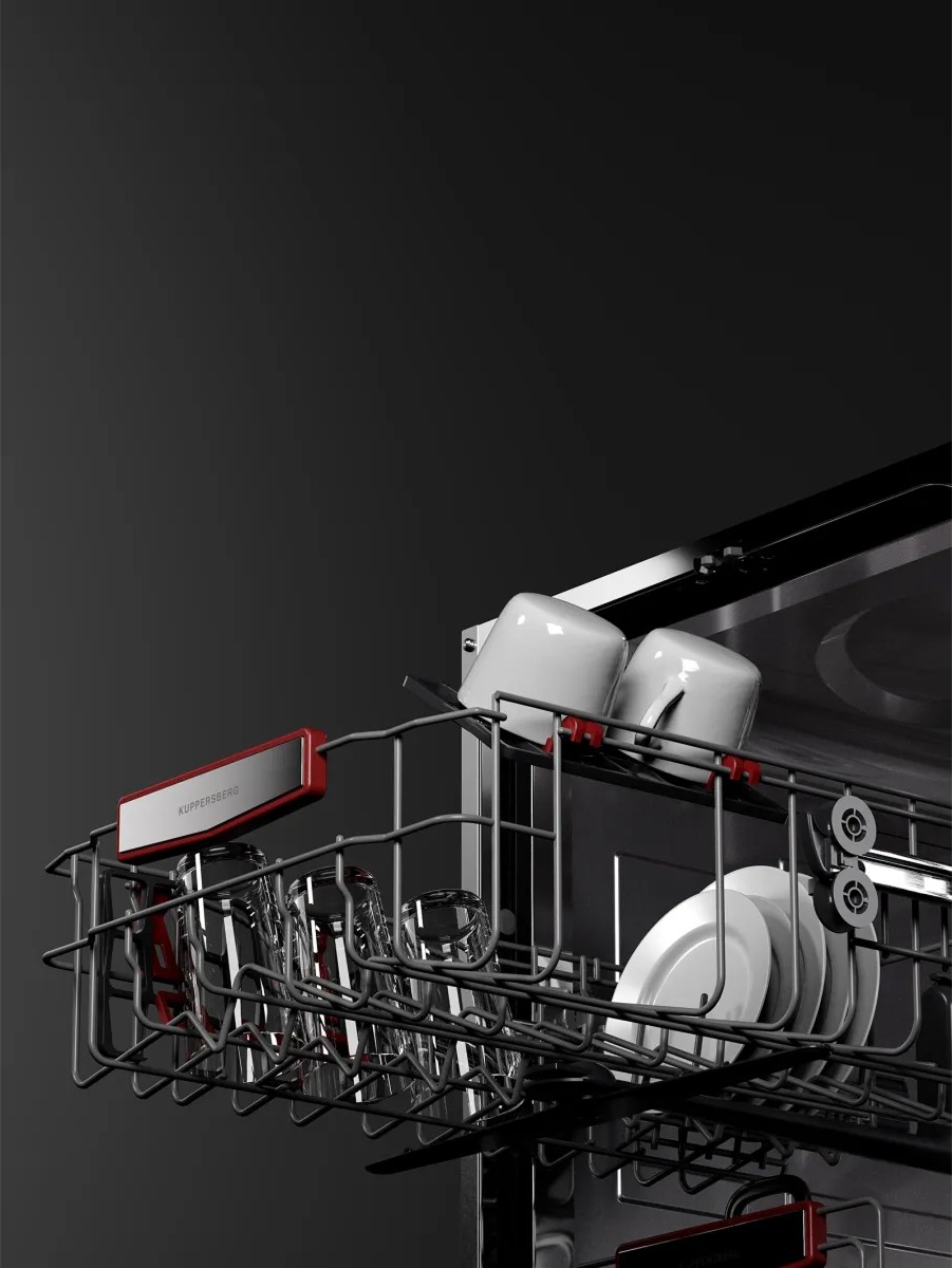 Встраиваемая модель Куперсберг отлично впишется в любой интерьер, главное — правильно выбрать место, чтобы подвести коммуникации. Устанавливается в нишу целиком, полностью закрывается декоративной панелью. Обратите внимание: в комплекте не идет фасад, его необходимо установить самостоятельно. Имеет уменьшенную ширину — благодаря этому поместится даже на очень маленькой кухне. В камеру можно загрузить ограниченное число комплектов: 10 шт. Комплектом считается набор посуды на одного человека, который нужен для полноценного приема пищи: глубокая и плоская тарелки, тарелка для салата, блюдце под чашку, сама чашка, ложка и вилка.