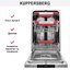 Полностью встраиваемое устройство Купперсберг GIM4578 устанавливается в кухонную тумбу. Узкая посудомойка имеет ширину всего 44,8 см при высоте 81,5 см и глубине 55 см. Размеры ниши для встраивания составляют 45 см в ширину и 82 см в высоту. При установке, подключении к электросети, водопроводу и канализации требуется тщательно следовать инструкции, которая изложена в руководстве пользователя.