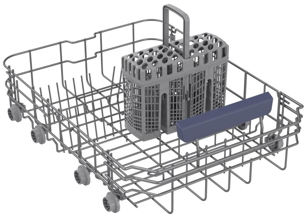 Корзина для столовых приборов — один из обязательных аксессуаров, которыми оснащается любая посудомоечная машина. Она представляет собой сетчатый пластиковый органайзер, в котором устанавливаются в вертикальном положении ложки, ножи и вилки. Корзина, как правило, разделяется на отдельные отсеки, в каждый из которых можно поместить один или несколько предметов. Зачастую сверху она закрывается специальной крышкой, которая также служит для разделения приборов, способствуя более тщательному их мытью.