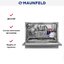 Посудомоечная машина Maunfeld MLP-06DS. Внешний вид выполнен в элегантном стиле нержавеющей стали, что придаёт прибору профессиональный и аккуратный вид. Компактные габариты 43.8×55×50 см позволяют разместить устройство даже в небольших кухонных нишах или на столешнице. Панель управления также оформлена в стальном тоне, что делает фасад цельным и минималистичным. Дисплей и индикаторы встроены ровно, без лишних выступающих элементов, а ручки и кнопки расположены удобно для быстрого доступа.