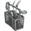 Корзина для столовых приборов — один из обязательных аксессуаров, которыми оснащается любая посудомоечная машина. Она представляет собой сетчатый пластиковый органайзер, в котором устанавливаются в вертикальном положении ложки, ножи и вилки. Корзина, как правило, разделяется на отдельные отсеки, в каждый из которых можно поместить один или несколько предметов. Зачастую сверху она закрывается специальной крышкой, которая также служит для разделения приборов, способствуя более тщательному их мытью.