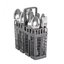 Корзина для столовых приборов — один из обязательных аксессуаров, которыми оснащается любая посудомоечная машина. Она представляет собой сетчатый пластиковый органайзер, в котором устанавливаются в вертикальном положении ложки, ножи и вилки. Корзина, как правило, разделяется на отдельные отсеки, в каждый из которых можно поместить один или несколько предметов. Зачастую сверху она закрывается специальной крышкой, которая также служит для разделения приборов, способствуя более тщательному их мытью.