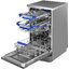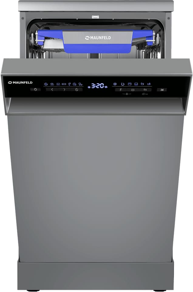 Отдельностоящая модель Маунфилд отлично впишется в кухонный интерьер, главное — правильно выбрать место, чтобы подвести коммуникации. Имеет уменьшенную ширину — благодаря этому поместится даже на очень маленькой кухне. В камеру можно загрузить ограниченное число комплектов: 10 шт. Комплектом считается набор посуды на одного человека, который нужен для полноценного приема пищи: глубокая и плоская тарелки, тарелка для салата, блюдце под чашку, сама чашка, ложка и вилка.