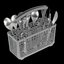 Корзина для столовых приборов — один из обязательных аксессуаров, которыми оснащается любая посудомоечная машина. Она представляет собой сетчатый пластиковый органайзер, в котором устанавливаются в вертикальном положении ложки, ножи и вилки. Корзина, как правило, разделяется на отдельные отсеки, в каждый из которых можно поместить один или несколько предметов. Зачастую сверху она закрывается специальной крышкой, которая также служит для разделения приборов, способствуя более тщательному их мытью.