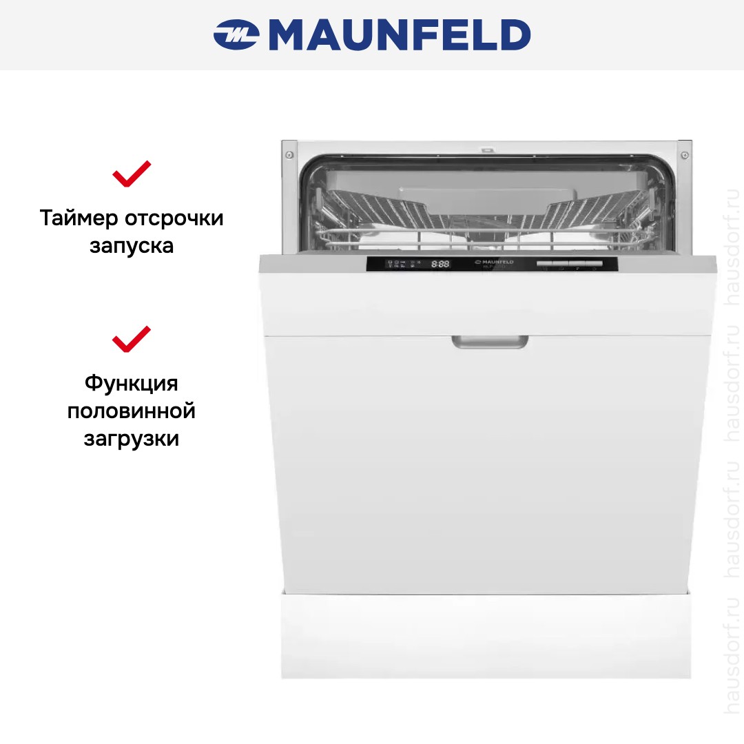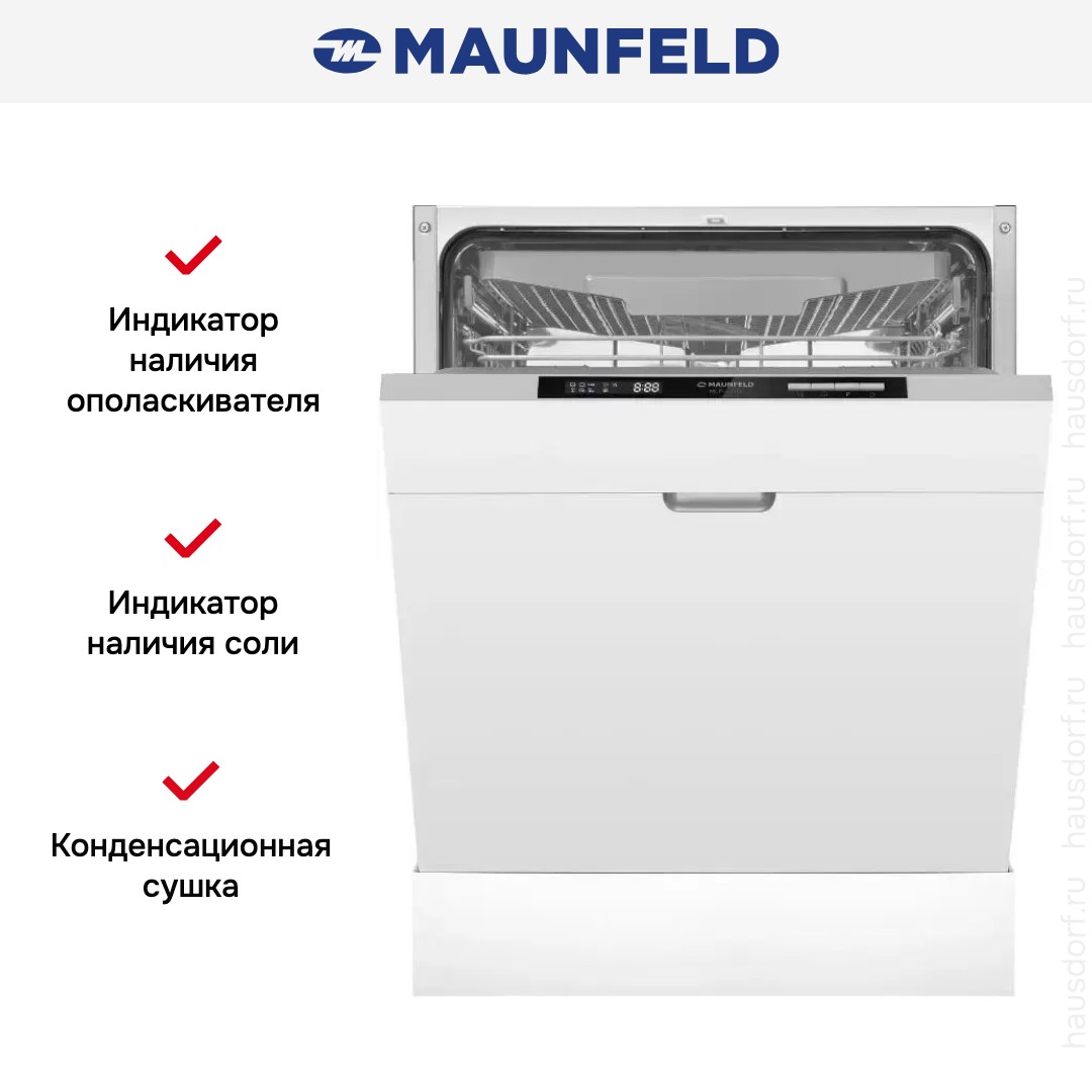 Встраиваемая модель Маунфилд отлично впишется в любой интерьер, главное — правильно выбрать место, чтобы подвести коммуникации. Устанавливается в нишу целиком, полностью закрывается декоративной панелью. Обратите внимание: в комплекте не идет фасад, его необходимо установить самостоятельно. Имеет стандартные размеры, поэтому может не поместиться на очень маленькой кухне. В камеру можно загрузить ограниченное число комплектов: 14 шт. Комплектом считается набор посуды на одного человека, который нужен для полноценного приема пищи: глубокая и плоская тарелки, тарелка для салата, блюдце под чашку, сама чашка, ложка и вилка.