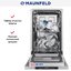 Встраиваемая модель Маунфилд отлично впишется в любой интерьер, главное — правильно выбрать место, чтобы подвести коммуникации. Устанавливается в нишу целиком, полностью закрывается декоративной панелью. Обратите внимание: в комплекте не идет фасад, его необходимо установить самостоятельно. Имеет уменьшенную ширину — благодаря этому поместится даже на очень маленькой кухне. В камеру можно загрузить ограниченное число комплектов: 9 шт. Комплектом считается набор посуды на одного человека, который нужен для полноценного приема пищи: глубокая и плоская тарелки, тарелка для салата, блюдце под чашку, сама чашка, ложка и вилка.