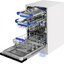 В большинстве современных посудомоек используется внутренняя светодиодная подсветка, что обусловлено целым рядом факторов. Светодиодные лампы отличаются долговечностью и не нуждаются в замене или дополнительном обслуживании. Одной лампы может хватить на весь срок эксплуатации устройства. Еще одно их преимущество — очень низкое потребление электроэнергии. Яркость светодиодных светильников такова, что при извлечении посуды не понадобится лишний раз включат верхнее освещение.