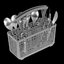 Корзина для столовых приборов — один из обязательных аксессуаров, которыми оснащается любая посудомоечная машина. Она представляет собой сетчатый пластиковый органайзер, в котором устанавливаются в вертикальном положении ложки, ножи и вилки. Корзина, как правило, разделяется на отдельные отсеки, в каждый из которых можно поместить один или несколько предметов. Зачастую сверху она закрывается специальной крышкой, которая также служит для разделения приборов, способствуя более тщательному их мытью.