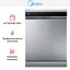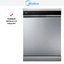 Посудомоечная машина Midea MFD60S350SI. Эта отдельностоящая полноразмерная модель имеет лаконичный серебристый корпус и чёрную панель управления, которая становится логичным акцентом на кухне и легко вписывается в современные интерьеры. Габариты 84.5×59.8×60 см соответствуют стандартным нишам и позволяют разместить прибор в большинстве кухонных планировок без дополнительных переделок.