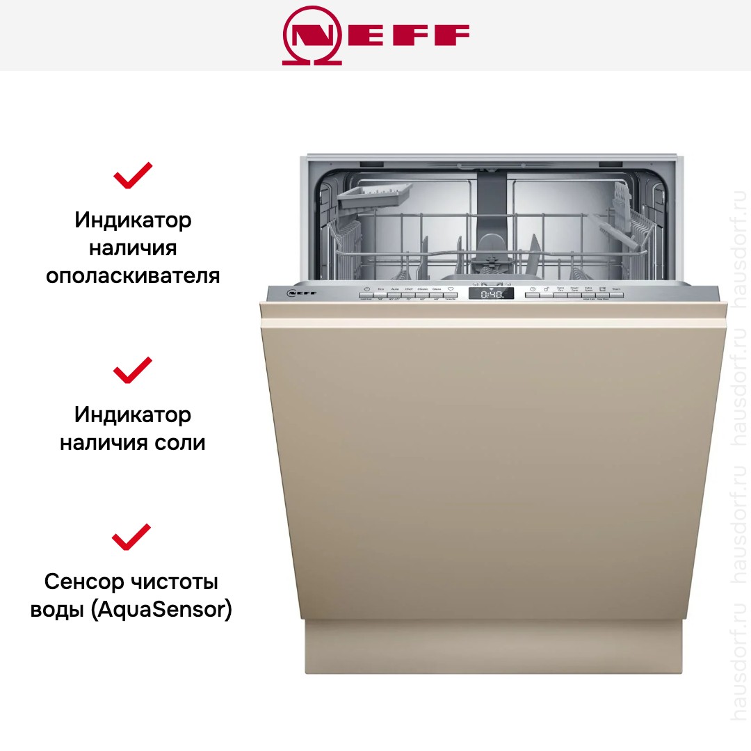 Встраиваемая модель Нефф отлично впишется в любой интерьер, главное — правильно выбрать место, чтобы подвести коммуникации. Устанавливается в нишу целиком, полностью закрывается декоративной панелью. Обратите внимание: в комплекте не идет фасад, его необходимо установить самостоятельно. Имеет стандартные размеры, поэтому может не поместиться на очень маленькой кухне. В камеру можно загрузить ограниченное число комплектов: 13 шт. Комплектом считается набор посуды на одного человека, который нужен для полноценного приема пищи: глубокая и плоская тарелки, тарелка для салата, блюдце под чашку, сама чашка, ложка и вилка.