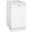 Белая отдельностоящая посудомоечная машина с электронным управлением: на панели есть кнопки выбора программ и индикаторы наличия соли, ополаскивателя и текущего режима. Благодаря сушке Natural/Active на посуде не остаются подтеки.