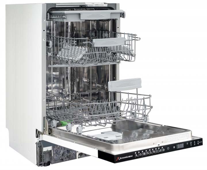 Полноразмерные модели выбирают в больших семьях, а также те, кто много готовит или часто принимает гостей. Их вместимость может составить до 15 комплектов посуды, а габаритные размеры соответствуют размерам стандартной кухонной мебели шириной и глубиной 60 см и высотой 82-85 см. Они выпускаются как во встраиваемом, так и в отдельностоящем варианте: во втором случае для установки понадобится достаточно много места. Как правило, полноразмерные приборы отличаются большим набором стандартных и специальных программ мойки, а также дополнительных опций: в частности, они оснащаются третьей корзиной для мытья столовых приборов.