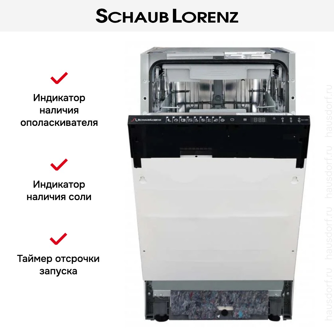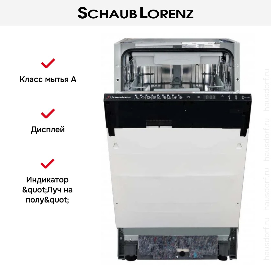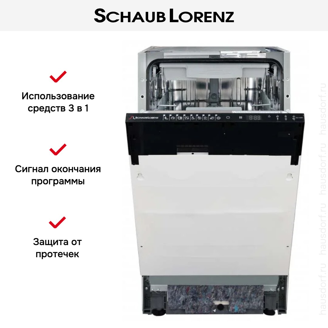 Посудомоечная машина Schaub Lorenz SLG-VI4911 — встраиваемая, полностью интегрируемая узкая модель, созданная для компактных кухонь и единого фасада.