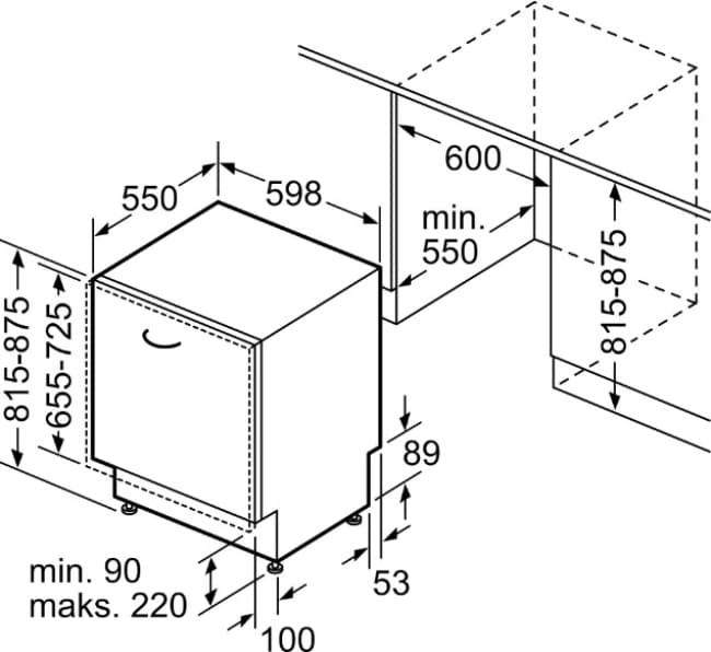 Встраиваемые устройства устанавливаются в тумбу или нишу мебельного гарнитура. В случае, если они полностью закрыты мебельным фасадом, машины считаются полностью встраиваемыми. Такое размещение позволяет сохранить единый стиль интерьера. Панель управления их также скрыта — чтобы начать работу и задать программу, дверцу придется открыть.