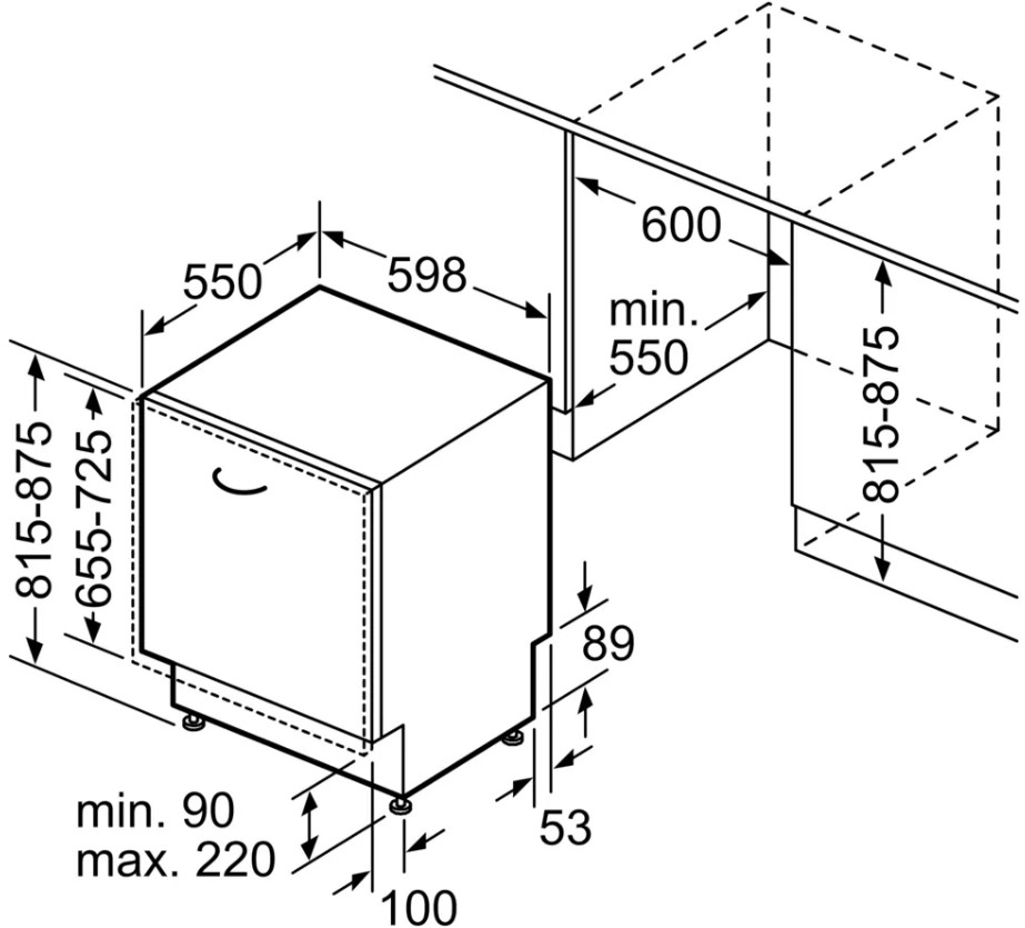 - Размеры ниши для встраивания (ВхШхГ): 81.5-87.5x60x55 см
