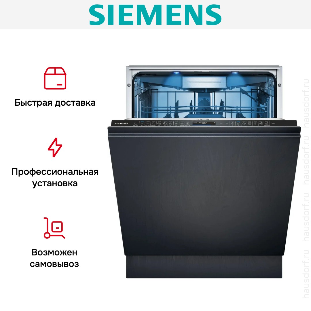 Встраиваемая посудомоечная машина Siemens SN87TX00CE — полноразмерная модель большой вместимости. Она встраивается в кухонный гарнитур, причем передняя панель будет скрыта под вашим декоративным фасадом. Панель управления спрятана в торце двери. С помощью функции DoorOpen Assist камеру можно открыть легким нажатием. Внутри имеется подсветка для вашего комфорта.