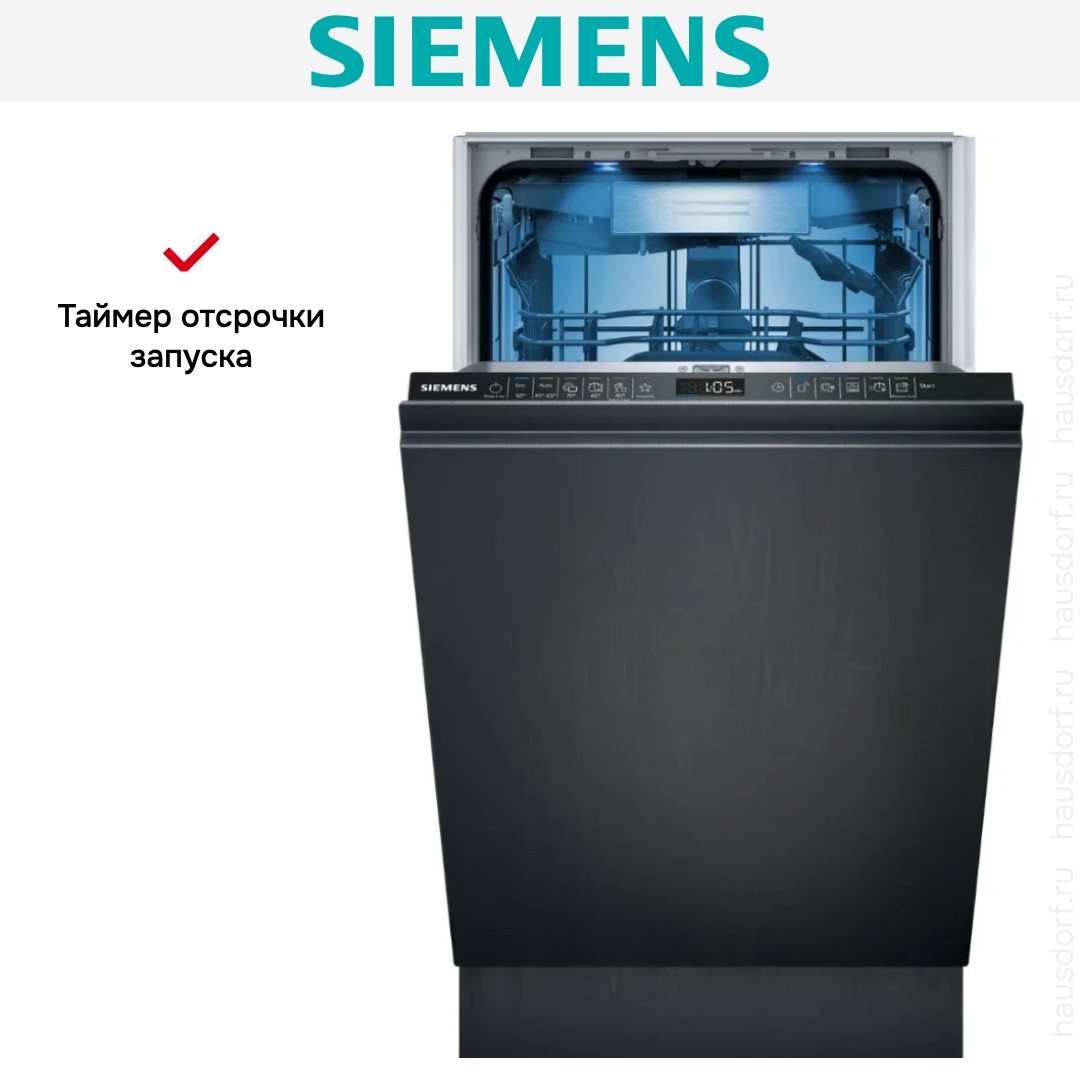 Встраиваемая модель Сименс отлично впишется в любой интерьер, главное — правильно выбрать место, чтобы подвести коммуникации. Устанавливается в нишу целиком, полностью закрывается декоративной панелью. Обратите внимание: в комплекте не идет фасад, его необходимо установить самостоятельно. Имеет уменьшенную ширину — благодаря этому поместится даже на очень маленькой кухне. В камеру можно загрузить ограниченное число комплектов: 10 шт. Комплектом считается набор посуды на одного человека, который нужен для полноценного приема пищи: глубокая и плоская тарелки, тарелка для салата, блюдце под чашку, сама чашка, ложка и вилка.