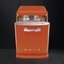 Еще один популярный оттенок фасада — серебристый или стальной, однако при выборе такой машины следует убедиться, что имеется в виду именно фронт машины, а не панель управления. Приборы ярких оттенков до сих пор остаются большой редкостью. Пользователь может обратить внимание на ПММ производства итальянской фирмы Smeg из ретро-коллекции в стиле 50-х годов — отдельностоящие модели в корпусе красного, оранжевого, зеленого, желтого, голубого цветов. Посудомойки бежевого цвета со стильной латунной фурнитурой выпускает германская фирма Kaiser. Скандинавская компания Asko предлагает посудомойки с фасадами редких оттенков — серого и «титан».