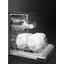 Конденсационная сушка посуды не требует затрат электроэнергии: вода с поверхности испаряется в горячем воздухе, конденсируется на стенках, а затем стекает в слив. Автоматическое открывание дверцы в конце сушки удаляет оставшиеся капли и не дает застаиваться воздуху. Верхняя корзина для размещения посуды регулируется по высоте. Во всех корзинах установлены держатели, которые служат для фиксации посуды во время мытья, а для столовых приборов предусмотрен отдельный лоток над верхней корзиной.