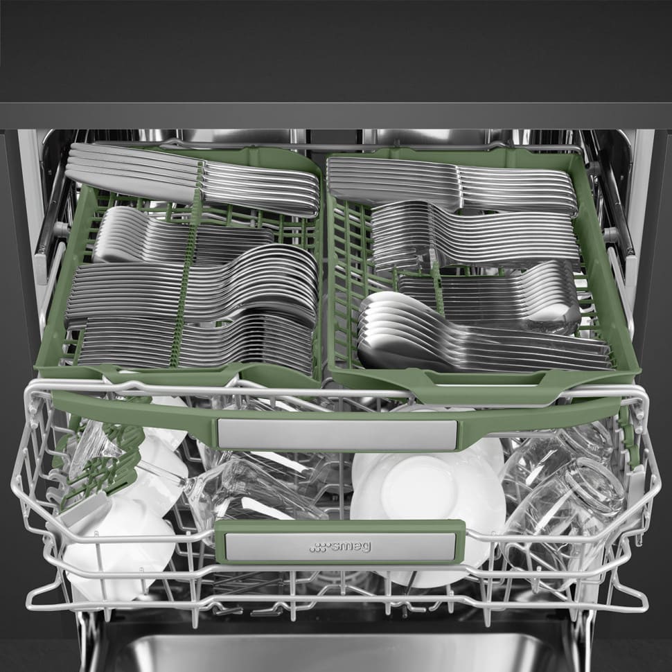 Встраиваемая модель Смег отлично впишется в любой интерьер, главное — правильно выбрать место, чтобы подвести коммуникации. Устанавливается в нишу целиком, полностью закрывается декоративной панелью. Обратите внимание: в комплекте не идет фасад, его необходимо установить самостоятельно. Имеет стандартные размеры, поэтому может не поместиться на очень маленькой кухне. В камеру можно загрузить ограниченное число комплектов: 14 шт. Комплектом считается набор посуды на одного человека, который нужен для полноценного приема пищи: глубокая и плоская тарелки, тарелка для салата, блюдце под чашку, сама чашка, ложка и вилка.