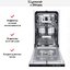 Узкие посудомоечные машины при стандартной высоте около 85 см и глубине 60 см имеют небольшую ширину порядка 45 см. Эти устройства выпускаются в основном во встраиваемом варианте. Их выбирают для установки в малометражных кухнях, для небольших семей из двух-трех человек, а также в случае, если пользователи нечасто готовят дома. Вместимость узких машин может составить от 5 до 10 комплектов посуды, а по своему функционалу, классу мытья, разнообразию типов сушки они постепенно приближаются к полноразмерным моделям. Компактные модели рассчитаны на одного-двух человек. Их высота составляет всего 45 см, а ширина и глубина достигают 50-55 см. Вместимость подобных устройств не превышает 3-6 стандартных комплектов посуды. Производители предлагают как встраиваемые, так и отдельностоящие модели таких посудомоек: вторые обычно выделяют в отдельную категорию настольных. Они уступают узким и полноразмерным не только по вместимости, но и по набору функций, который включает, как правило, несколько стандартных программ.