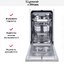Узкие посудомоечные машины при стандартной высоте около 85 см и глубине 60 см имеют небольшую ширину порядка 45 см. Эти устройства выпускаются в основном во встраиваемом варианте. Их выбирают для установки в малометражных кухнях, для небольших семей из двух-трех человек, а также в случае, если пользователи нечасто готовят дома. Вместимость узких машин может составить от 5 до 10 комплектов посуды, а по своему функционалу, классу мытья, разнообразию типов сушки они постепенно приближаются к полноразмерным моделям. Компактные модели рассчитаны на одного-двух человек. Их высота составляет всего 45 см, а ширина и глубина достигают 50-55 см. Вместимость подобных устройств не превышает 3-6 стандартных комплектов посуды. Производители предлагают как встраиваемые, так и отдельностоящие модели таких посудомоек: вторые обычно выделяют в отдельную категорию настольных. Они уступают узким и полноразмерным не только по вместимости, но и по набору функций, который включает, как правило, несколько стандартных программ.