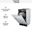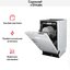 Три разбрызгивателя позволяют добиться качественного мытья класса А. Посуда в камере размещается в двух корзинах с откидными полками для чашек, в том числе в верхней регулируемой по высоте. Предусмотрен режим половинной загрузки с размещением посуды в одной из корзин или в обеих сразу. Добавить посуду в корзину или изменить программу работы допустимо уже после начала цикла. Закрытая электронная панель управления с дисплеем и сенсорными кнопками позволяет задать отсрочку запуска на срок до 24 часов и выбрать быструю или экстра-сушку. Ширина устройства составляет всего 45 см, что обеспечивает удобную установку на малогабаритной кухне.