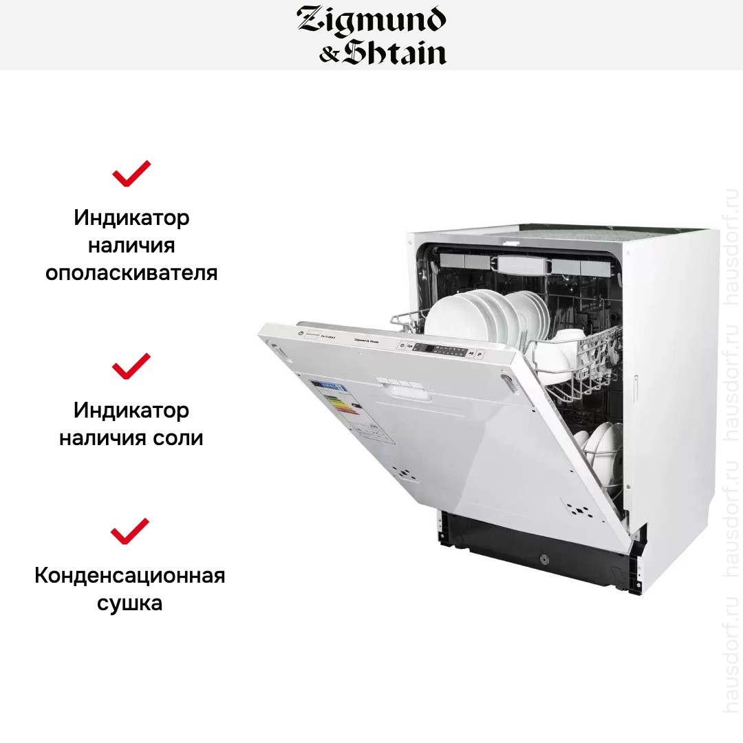 Zigmund Shtain DW 129.6009 X — узкая посудомоечная машина шириной 60 см и глубиной 55 см. Для удобства загрузки предусмотрена подсветка внутренней камеры. Возможность изменения программы и добавления посуды после запуска обеспечивает комфорт при эксплуатации устройства. Вместимость 14 комплектов посуды подойдет для большой семьи. Режим половинной загрузки с 3 способами размещения посуды позволит экономить воду и снижает расход электроэнергии. Три разбрызгивателя равномерно распределяют воду и моющее средство по всему объему камеры. Индикатор «Луч на полу» оповещает о завершении работы. Класс мытья и сушки А удостоверяет эффективность устройства. Дополнительные характеристики: 9 программ мытья, автоматическая настройка жесткости воды, подсветка внутренней камеры.