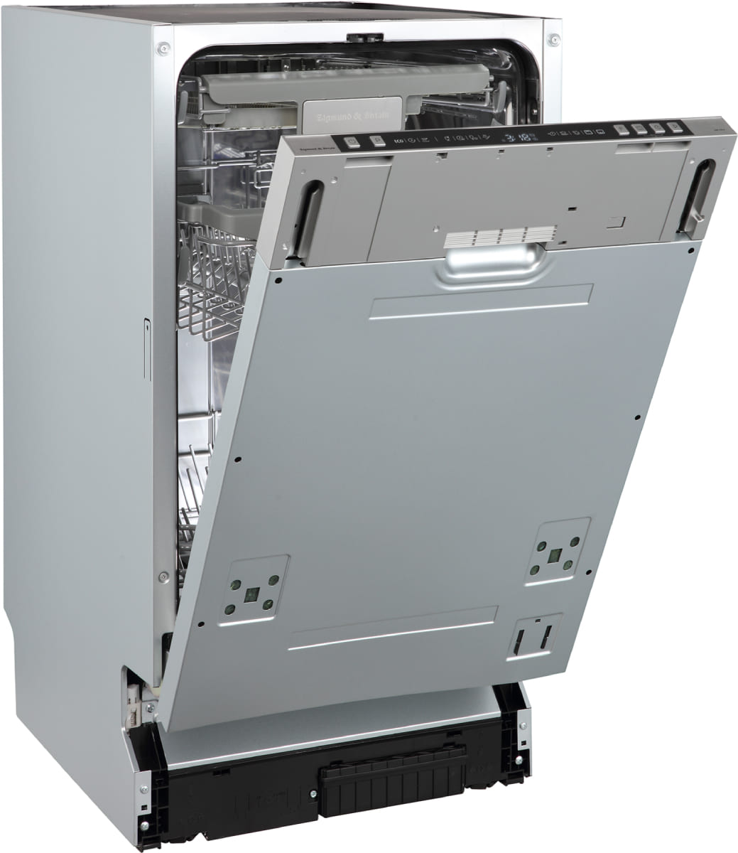 Встраиваемая модель Зигмунд Штайн отлично впишется в любой интерьер, главное — правильно выбрать место, чтобы подвести коммуникации. Устанавливается в нишу целиком, полностью закрывается декоративной панелью. Обратите внимание: в комплекте не идет фасад, его необходимо установить самостоятельно. Имеет уменьшенную ширину — благодаря этому поместится даже на очень маленькой кухне. В камеру можно загрузить ограниченное число комплектов: 10 шт. Комплектом считается набор посуды на одного человека, который нужен для полноценного приема пищи: глубокая и плоская тарелки, тарелка для салата, блюдце под чашку, сама чашка, ложка и вилка.