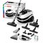 Шнур питания автоматически сматывается по завершении уборки. Для удлинения расстояния от корпуса до насадки используется специальная трубка, в данном случае — телескопическая.