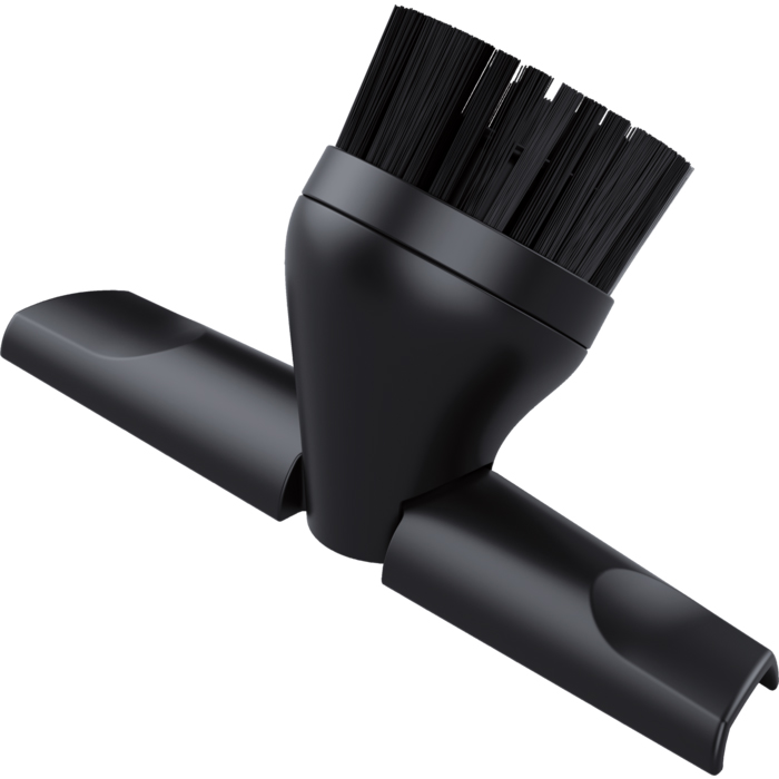 Шнур питания автоматически сматывается по завершении уборки. Для удлинения расстояния от корпуса до насадки используется специальная трубка, в данном случае — телескопическая.