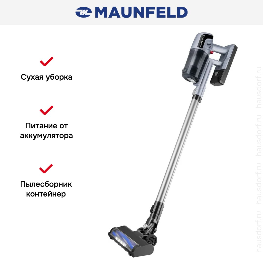 Пылесос Maunfeld MF-2032GR PRO — практичный и стильный помощник для ежедневной сухой уборки, сочетающий компактность, лёгкость и высокую эффективность. Вертикальная конструкция обеспечивает максимальную манёвренность: вы без труда очистите пространство под мебелью, вдоль стен или в узких коридорах, не нагибаясь и не перетаскивая громоздкое оборудование. Агрегат одинаково хорошо справляется с пылью, шерстью животных, крошками, песком и другим бытовым сором на твёрдых покрытиях — ламинате, плитке, паркете — а также на коврах средней ворсистости.