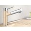 Специальная насадка позволяет выдвинуть излив как маленький шланг и направить струю в слишком высокую кастрюлю, которая не помещается под стационарным краном, на овощи в раковине, на загрязнения в неудобных уголках мойки, которые нужно удалить и т.д. Благодаря особой конструкции вы можете также направить воду из раковины в ванну или из одной чаши мойки в другую одним поворотом крана в нужную сторону. Дополнительная деталь, которая повышает комфорт использования, — аэратор. Он делает поток воды мягче, насыщая его кислородом, таким образом дополнительно уменьшая ее расход: объем струи увеличивается за счет воздуха, а не за счет повышения напора из водопровода.