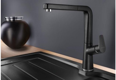 Специальная насадка позволяет выдвинуть излив как маленький шланг и направить струю в слишком высокую кастрюлю, которая не помещается под стационарным краном, на овощи в раковине, на загрязнения в неудобных уголках мойки, которые нужно удалить и т.д. Благодаря особой конструкции вы можете также направить воду из раковины в ванну или из одной чаши мойки в другую одним поворотом крана в нужную сторону. Дополнительная деталь, которая повышает комфорт использования, — аэратор. Он делает поток воды мягче, насыщая его кислородом, таким образом дополнительно уменьшая ее расход: объем струи увеличивается за счет воздуха, а не за счет повышения напора из водопровода.